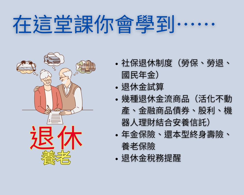 面對長壽及退休風險,你做好規劃了嗎?除了「投資」,最基本的保險,你也同步完整規劃了嗎?駱潤生老師從社會保險開始,給你運用保險完美退休基礎規劃的全面觀。課程定價3980元;優惠售價1680元。