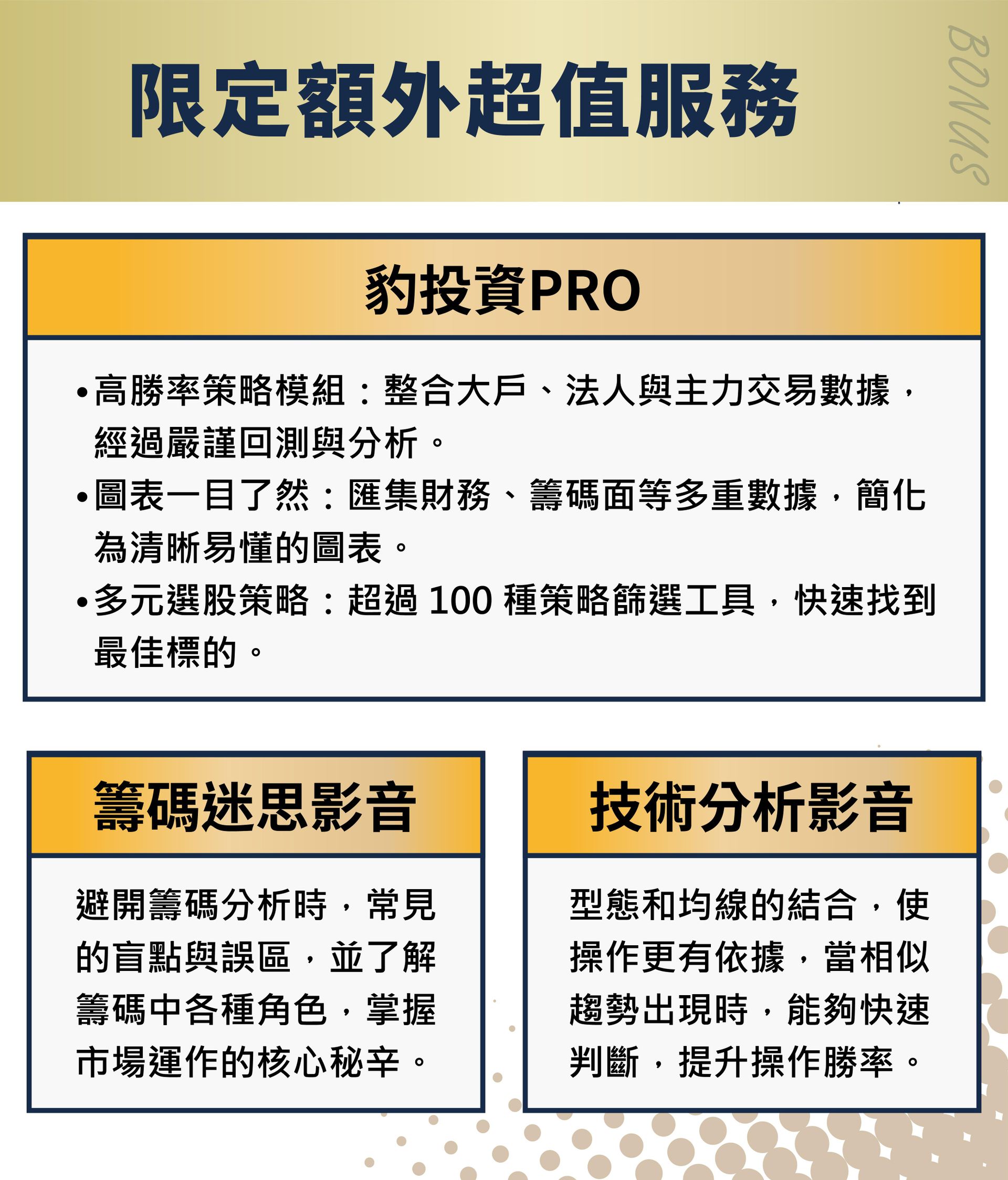 4️⃣ 豹投資Pro運用:多款高勝率模組,整合法人大戶交易數據。