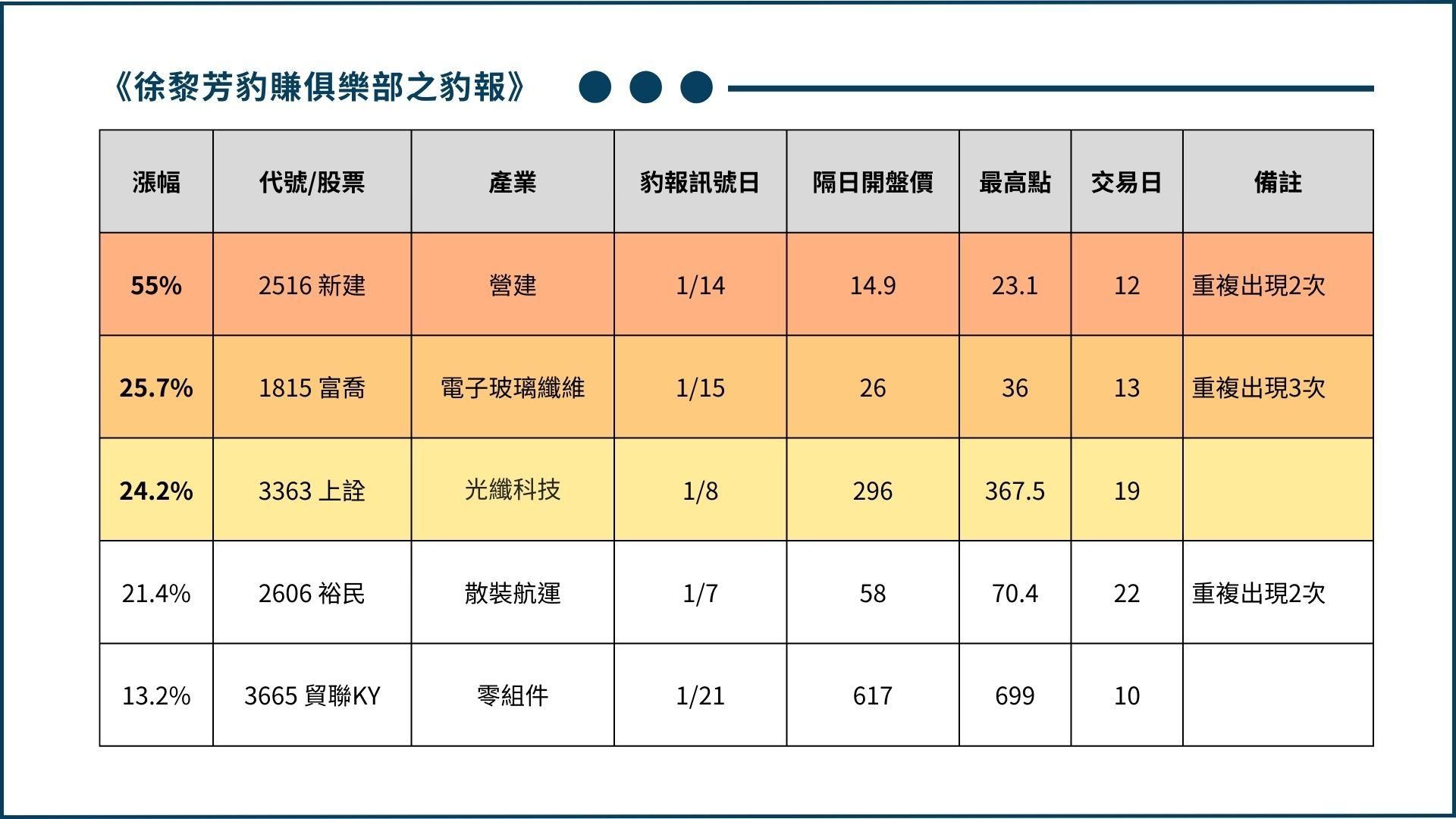 0215(六)♔1月豹報表現排行榜:強勢股揭曉,誰是最大黑馬?