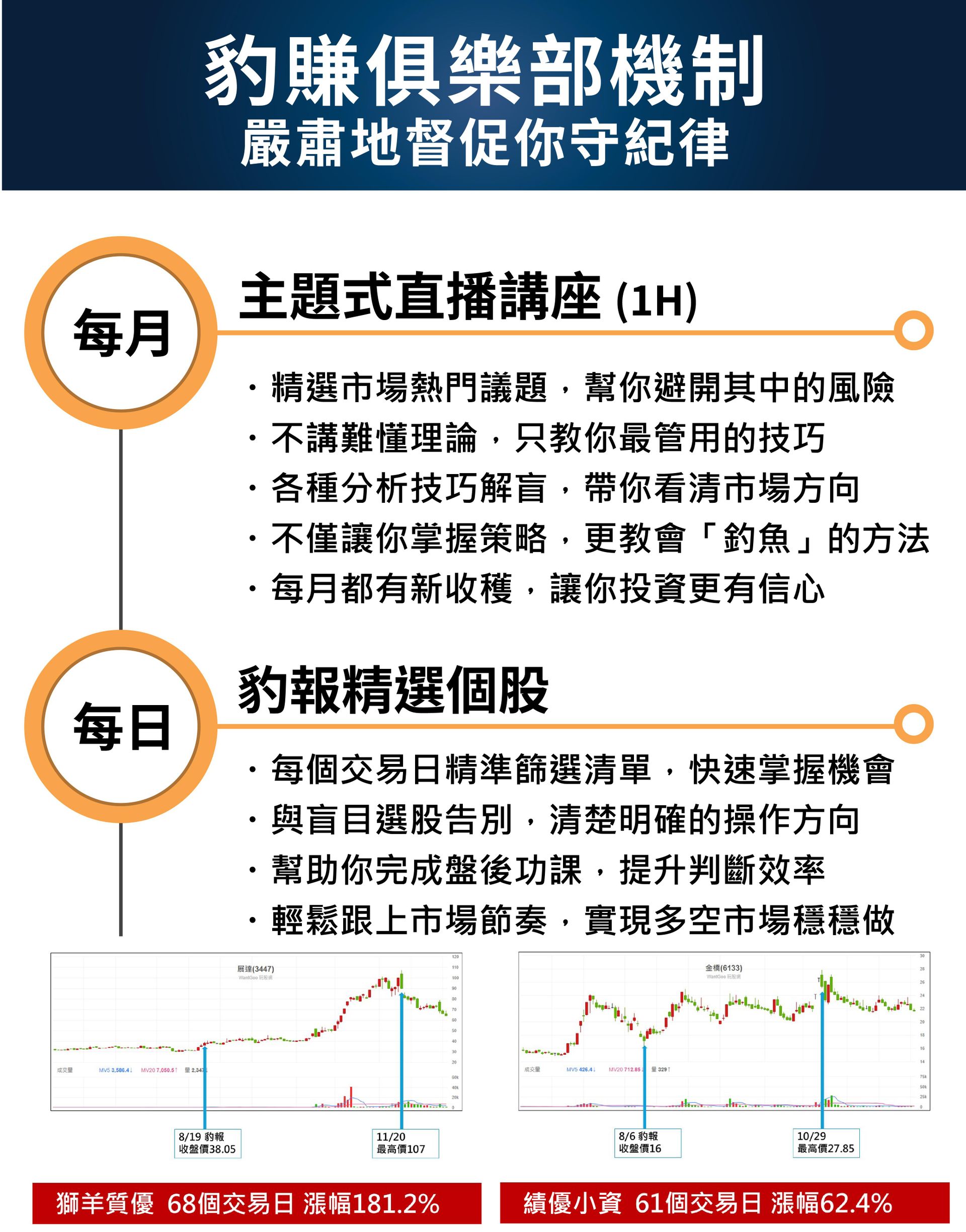 2025年的豹賺陪跑俱樂部,透過實證有效的策略模組和99%的科學數據,讓您不需精通任何技術分析,就能在每個交易日成為你的最佳後盾,並且透過每月主行性講座,穩固操作的勝利之門!