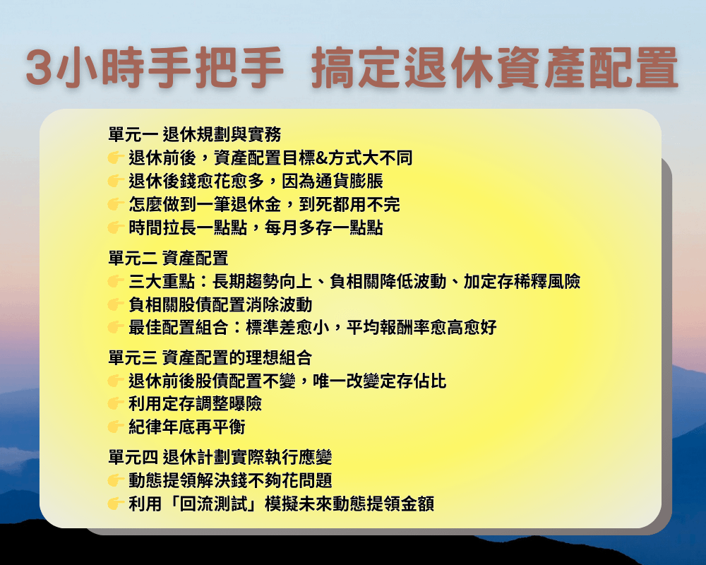 針對「退休金到底要多少錢才夠用」、「每月要多少錢來籌措退休金」、「要投資什麼才能達成目標」、「要如何面對資產淨變動」四大退休痛點一一提出詳細且確實可行的實戰計劃。在考量通膨和長壽的兩大壓力下,引領投資人透過定期定額投資「長期趨勢向上」且「負相關」的資產配置組合,加上動態調整提領率+定存配套策略運用,打造一個永遠不用擔心會用完的退休資產組合。定價6000元。