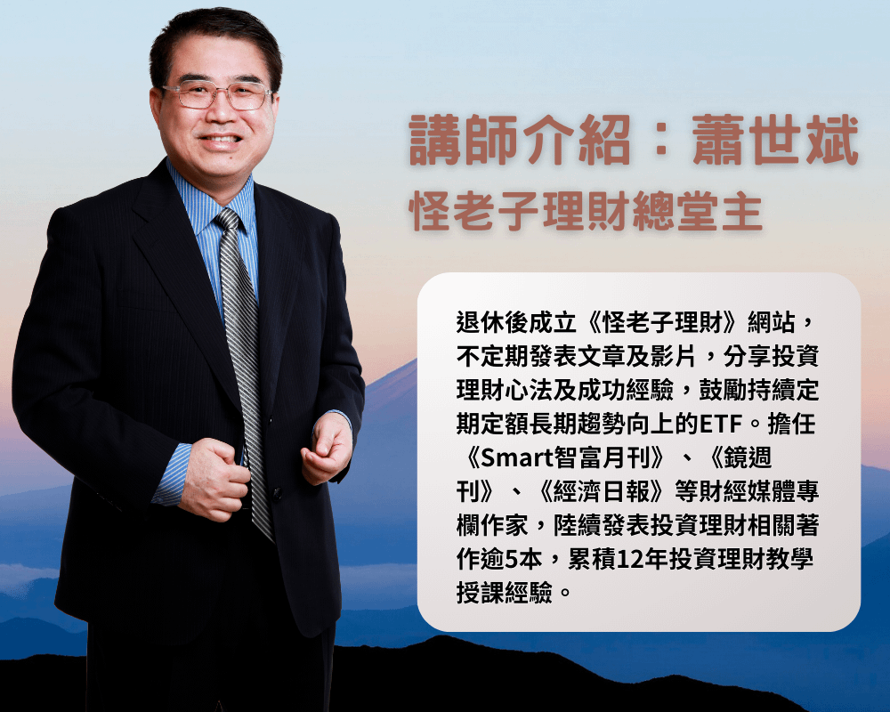 退休後成立《怪老子理財》網站,不定期發表文章及影片,分享投資理財心法及成功經驗,鼓勵持續定期定額長期趨勢向上的ETF。擔任《Smart智富月刊》、《鏡週刊》、《經濟日報》等財經媒體專欄作家,陸續發表投資理財相關著作逾5本,累積12年投資理財教學授課經驗。