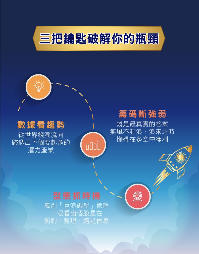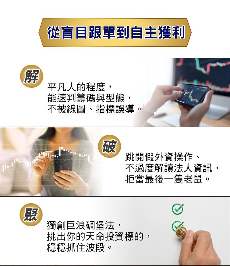 做出精準投資決策-獨創的「巨浪碉堡」選股法,藉由觀察個股型態再看籌碼多寡,培養選股敏感度及判斷力,嚴守紀律穩超勝算。