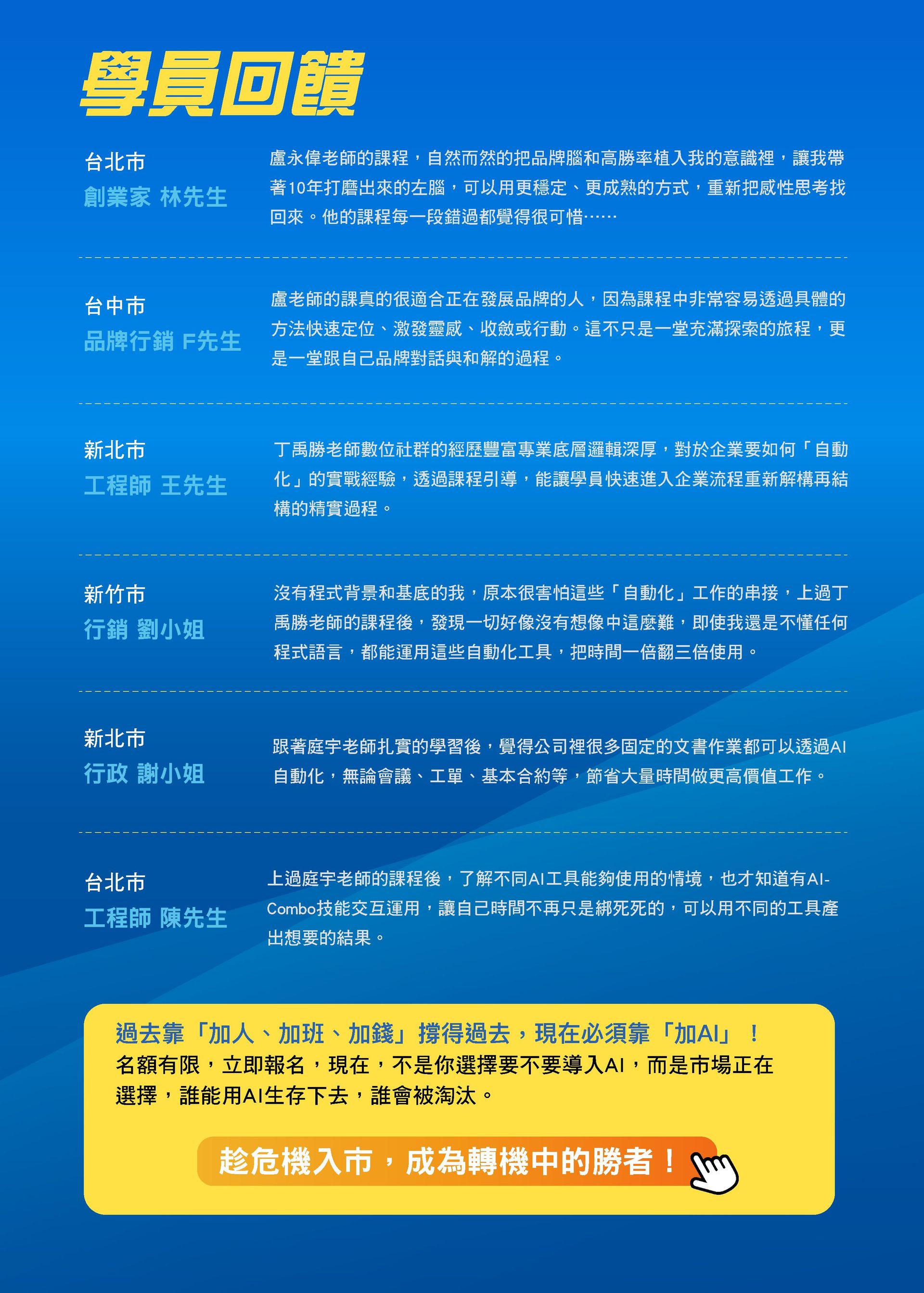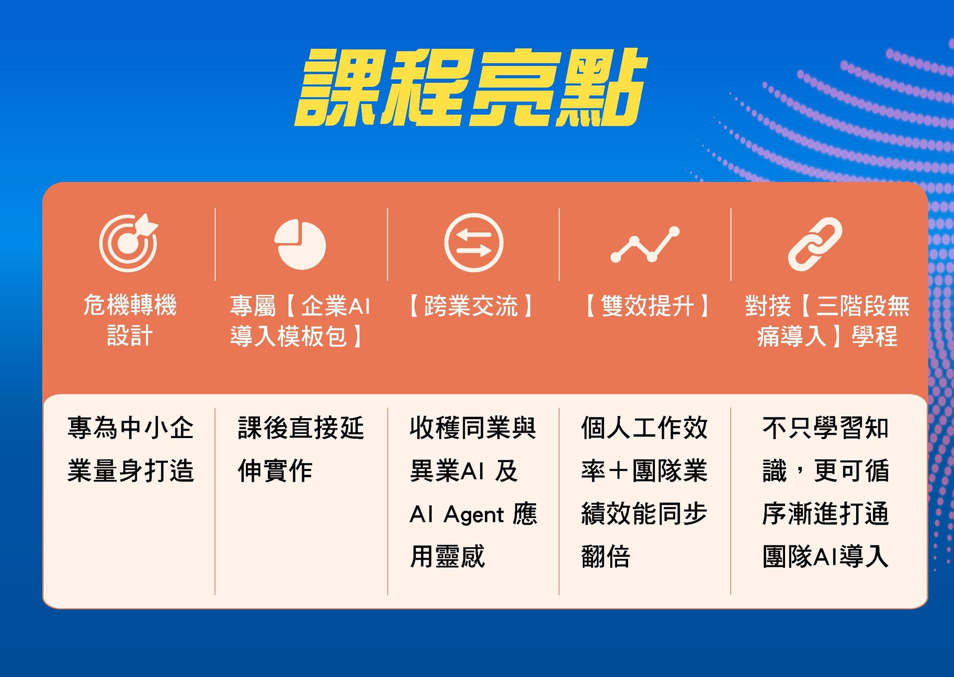 ✅ 訓練內部AI種子教練**:不怕AI取代,反而成為【AI高手】,打造不被取代的競爭力!
