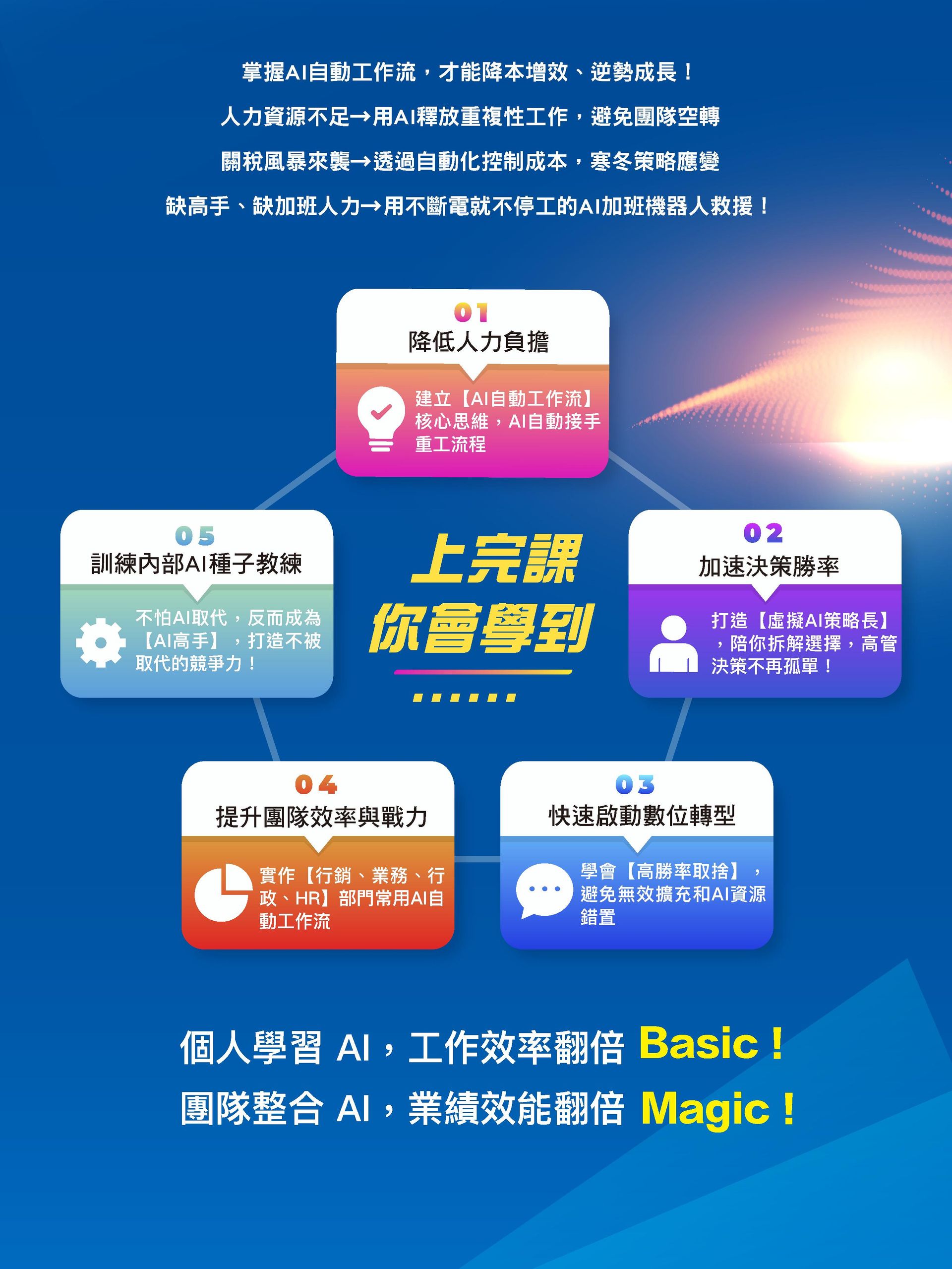 ✅ 降低人力負擔**:建立【AI自動工作流】核心思維,AI自動接手重工流程