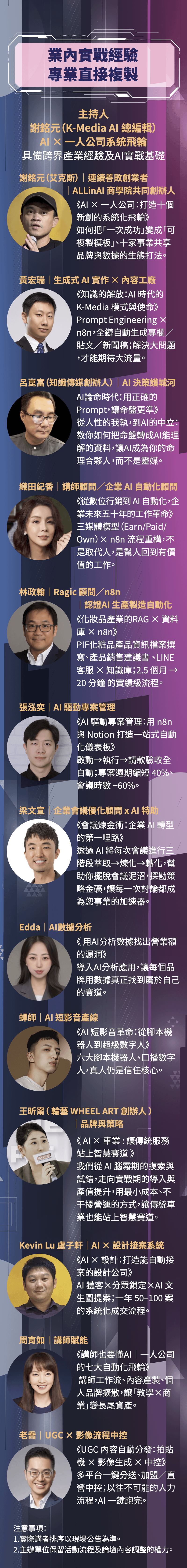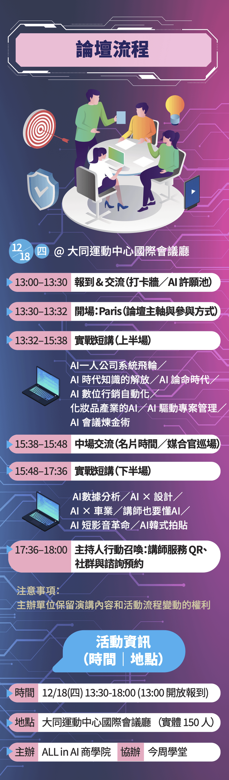 個資聲明:本活動主協辦單位將同時保有學員報名資訊,以利後續學員維護服務。報名視同同意個資授權。