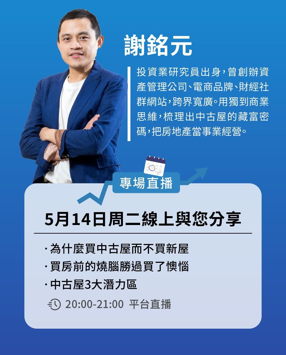 投資業研究員出身,曾創辦資產管理公司、電商品牌、財經社群網站,跨界寬廣。以獨到商業思維,梳理中古屋的藏富密碼,把房地產當事業經營。