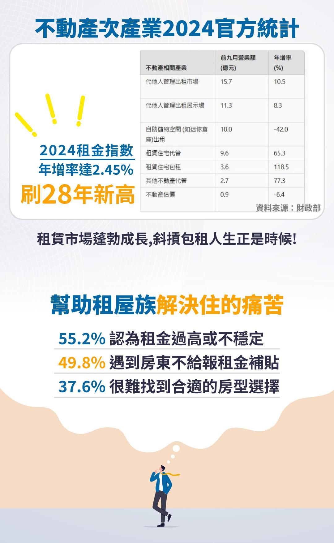 白手起家的年輕包租公,從除甲醛的施工工班跨入房地產,看到房地產包租代管市場的商機大勢。建立獨有的商業模式,讓房東願意釋出房源、乘著政策的順風車建立穩定的現金流。