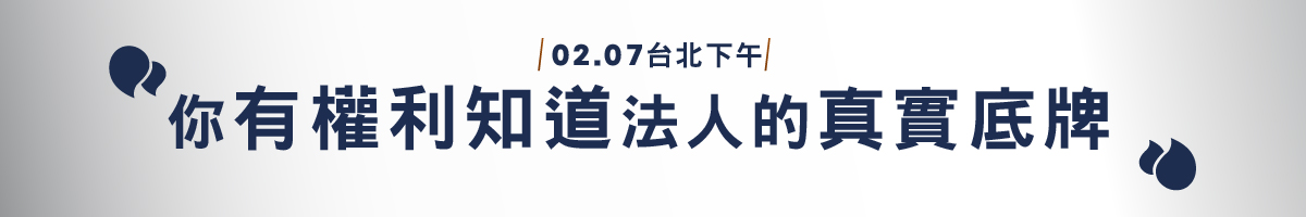 這也是為什麼徐黎芳會在2月7日周六下午的台北實戰課中,親自帶領大家拆解最新的台股大數據,確保你在下一次噴發行情來臨時,不再只是「觀望」,而是能「按照計畫進場」。