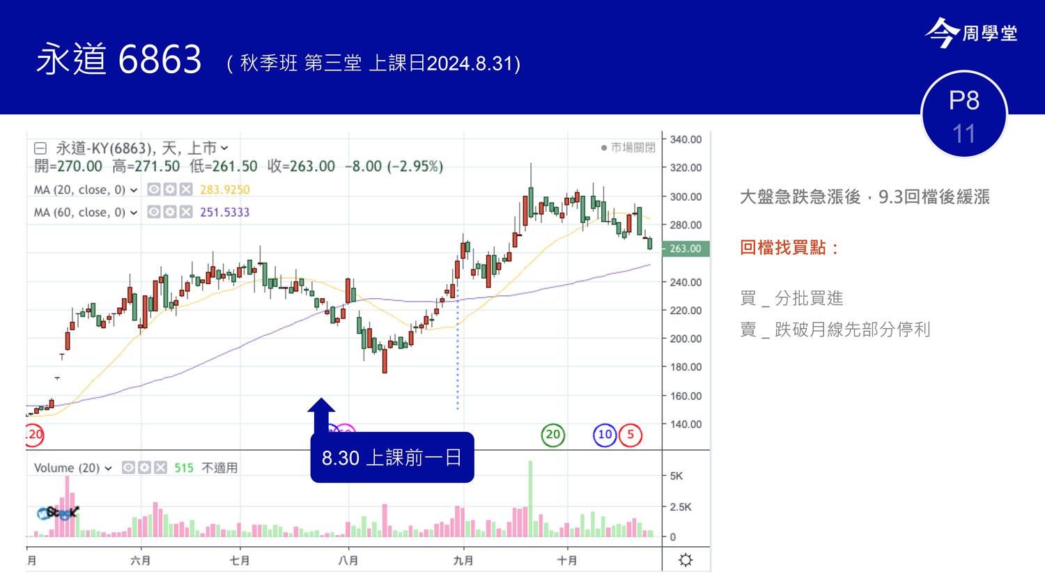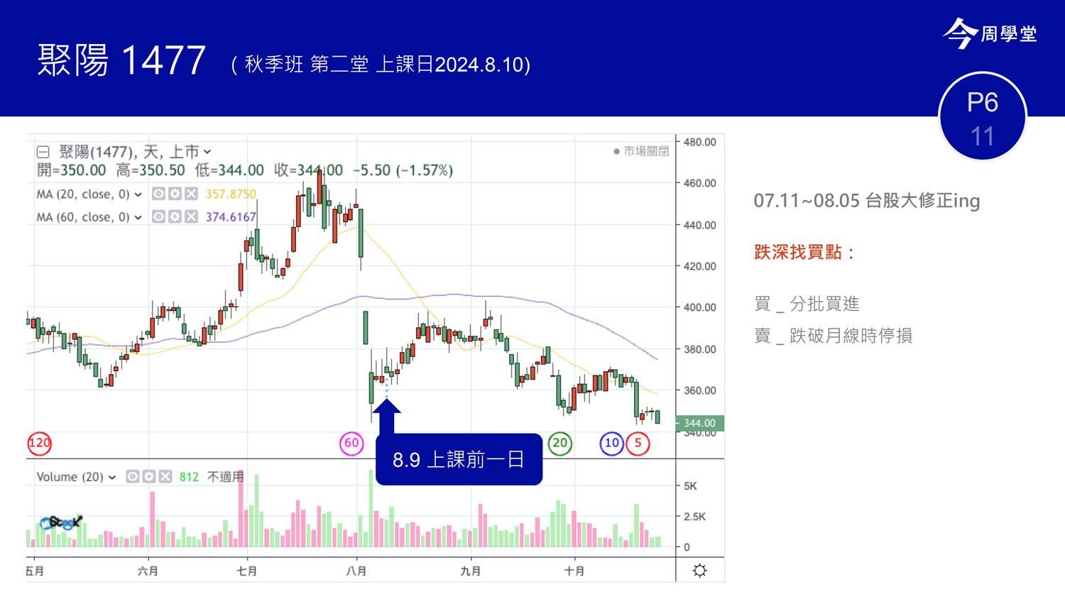 下方7檔 產業隊長 張捷在 7~9月秋季班帶著同學一同研究的個股線圖中,各家股價都跌,差別是跌多跌少?股價有回來嗎?