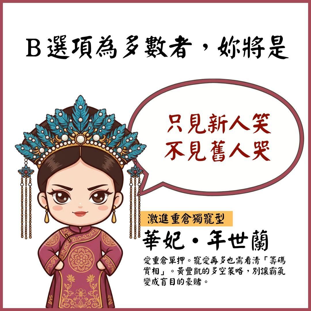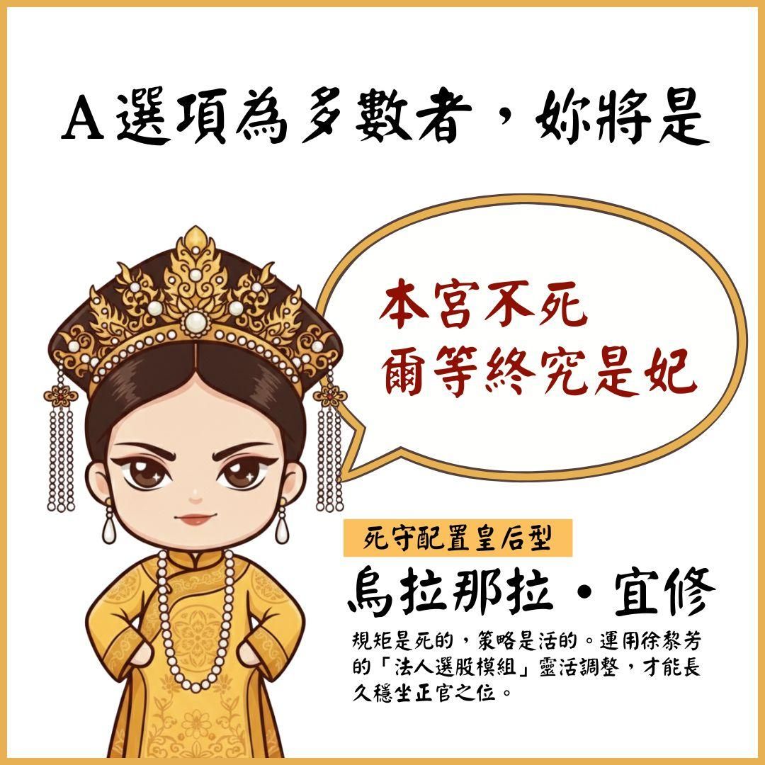 (A) 將多出的獲利撥入太廟。比起一時的受寵,本宮更在乎皇后的位份是否長久。